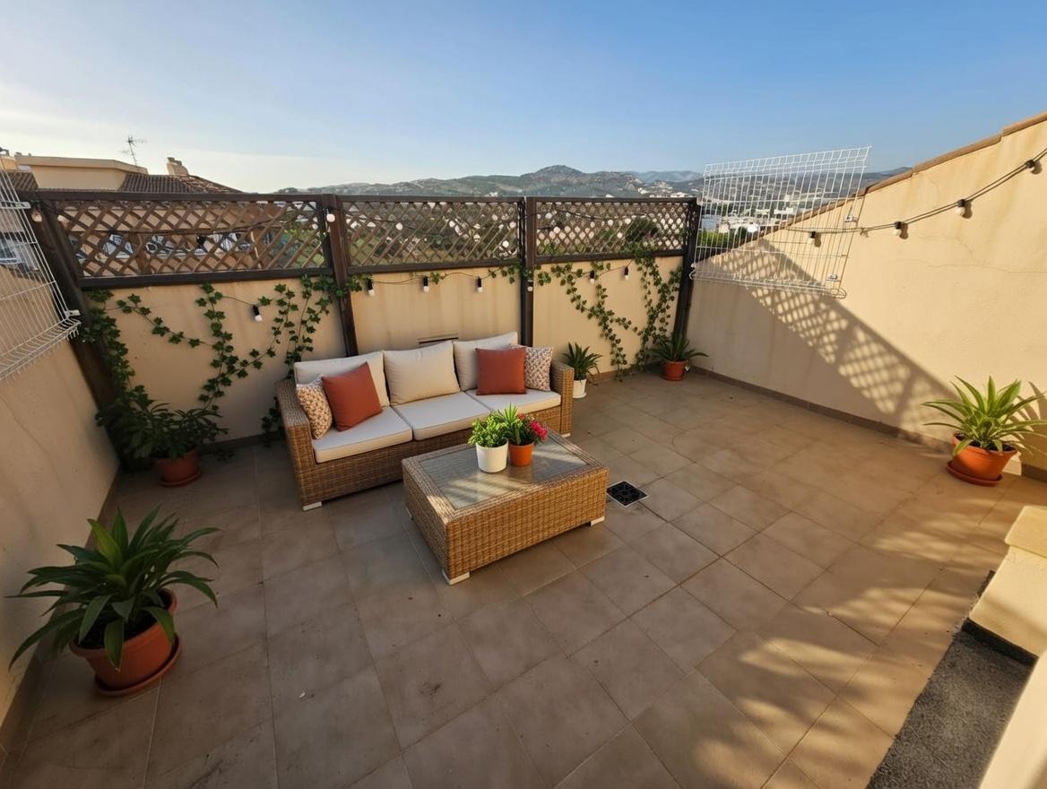 La terraza de la habitación principal tiene vistas preciosas de la montaña, mientras que la otra terraza esta orientada hacia el mar, con vista panorámica de toda la ciudad y el mar de fondo.